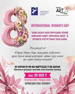 Олон улсын эмэгтэйчүүдийн эрхийг хамгаалах өдөрт зориулсан тусгай арга хэмжээг Монголын Урчуудын Эвлэл энэ сарын 7, 8-ны өдрүүдэд зохион байгуулах гэж байна.